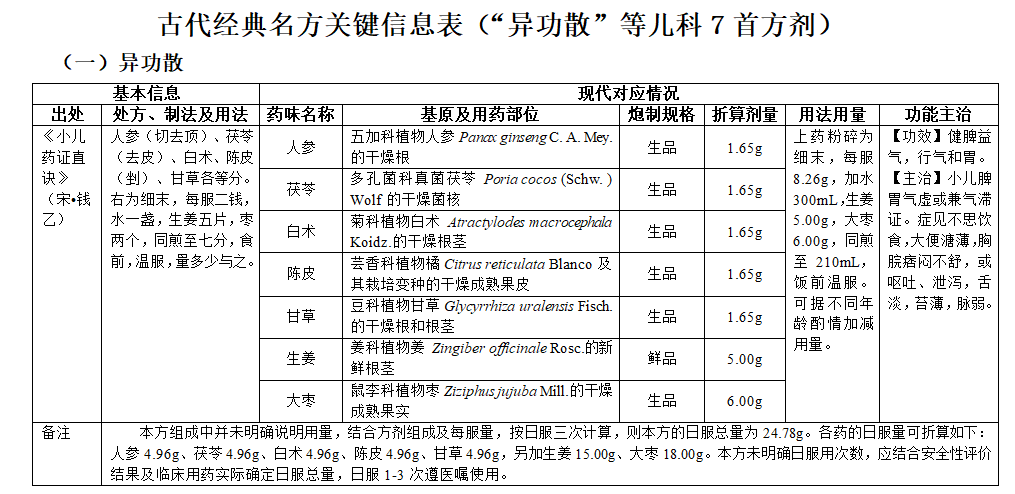古代经典名方目录(第二批儿科部分)