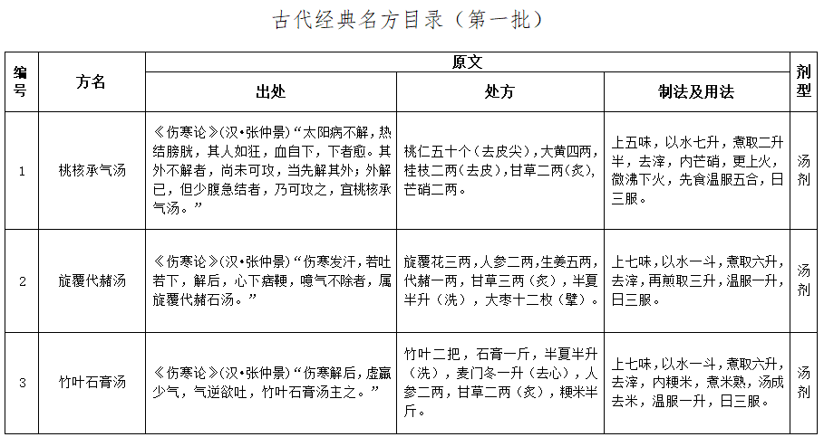 古代经典名方目录(第一批)