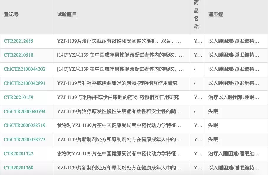 YZJ-1139是食欲素1型和2型双重受体(OX1R and OX2R)的高效拮抗剂,通过抑制食欲素受体从而改善睡眠,包括加快睡眠速度和延长睡眠时间。同时,YZJ-1139拥有吸收快速和半衰期适中的优势,可达到快速起效和次日残留效应低的效果,是国内首个完成临床Ⅱ期的食欲素受体拮抗剂。