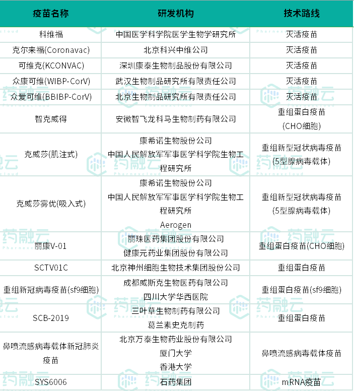 国内新冠疫苗获批情况