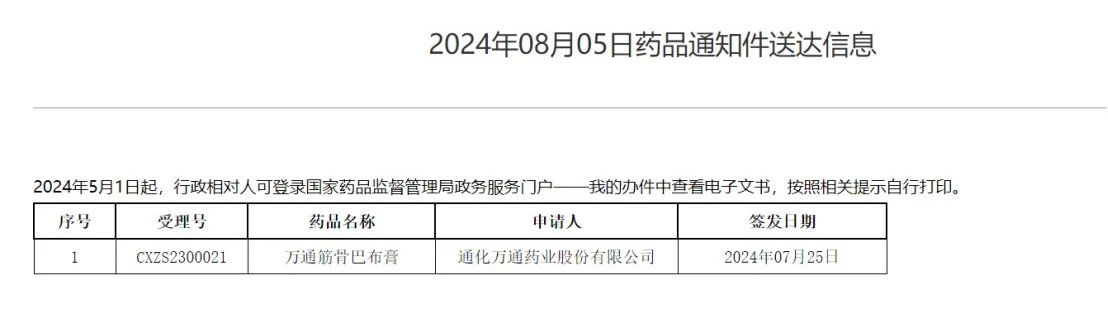 8月5日CDE下达药品通知件,万通药业的万通筋骨巴布膏未被批准。