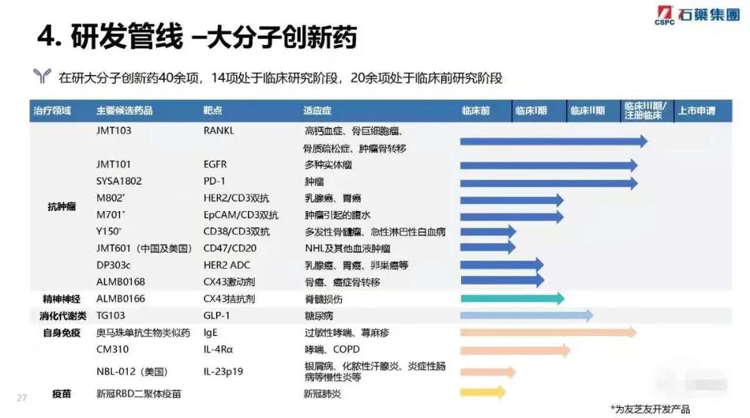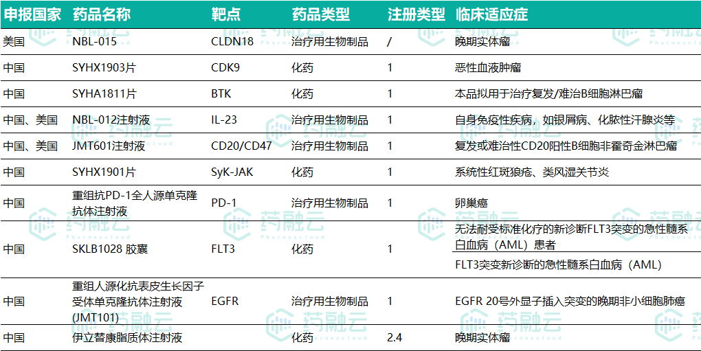 2021年至今,石药获得的临床批件共10个,8款1类新药在中国获批;3款新药在美国获批,为NBL-015、JMT601和NBL-012,详见下图。