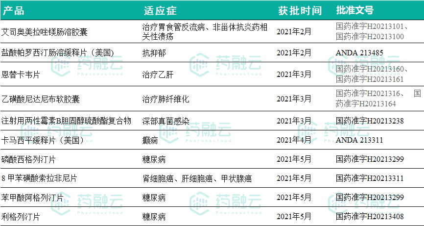 2021年至今,石药集团获得的上市批准批件共10个,均为仿制,8款在中国获批;2款在美国获批。详见下图