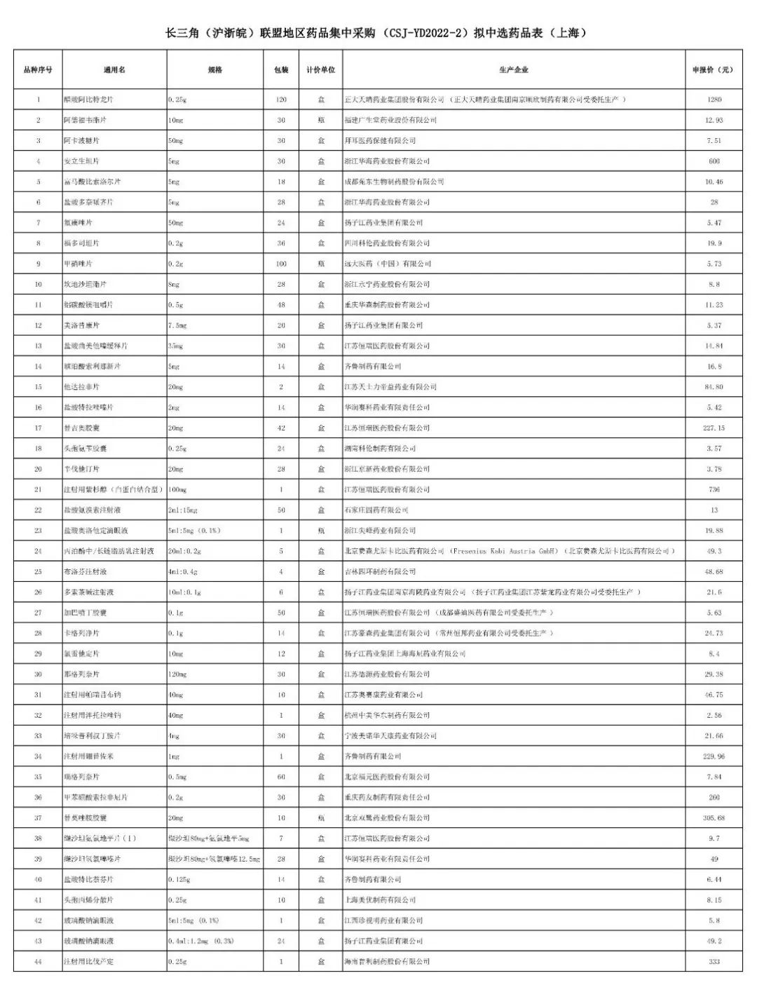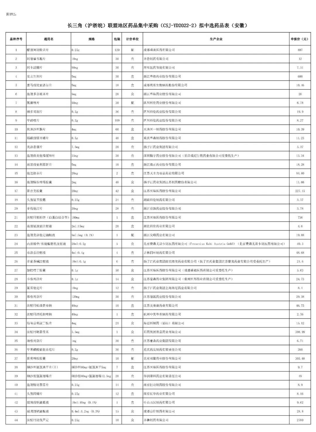 现将长三角(沪浙皖)联盟地区药品集中采购(文件编号:CSJ-YD2022-2)拟中选结果进行公示,详见附件。