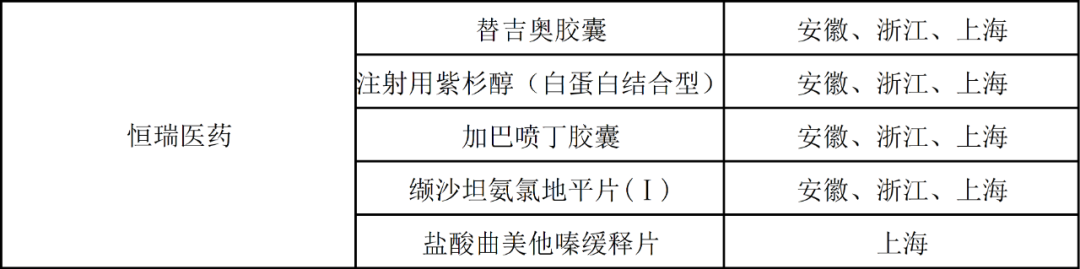 恒瑞医药同样有5个产品拟中选(不包含子公司),其抗肿瘤药物替吉奥胶囊(规格:25mg,包装:42)以227.15元的申报价拟中选安徽、浙江、上海这三个地区。