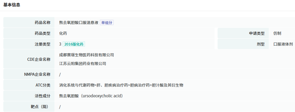 4月8日,成都赛璟生物研发的熊去氧胆酸口服混悬液作为国内首仿 3.1 类新药,正式获批上市。是国内企业首个且唯一获批治疗罕见病囊性纤维化相关肝病(CFALD)的药物,填补了国内目前上市的熊去氧胆酸片剂/胶囊剂无此适应症的空白。