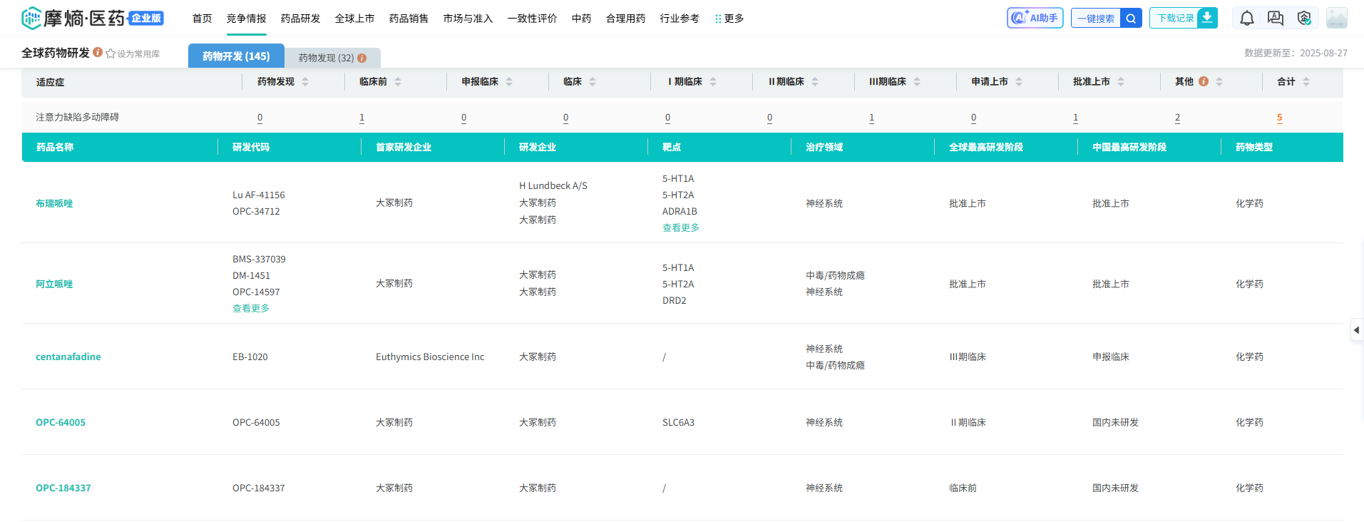 截图来源:摩熵医药全球药物研发数据库