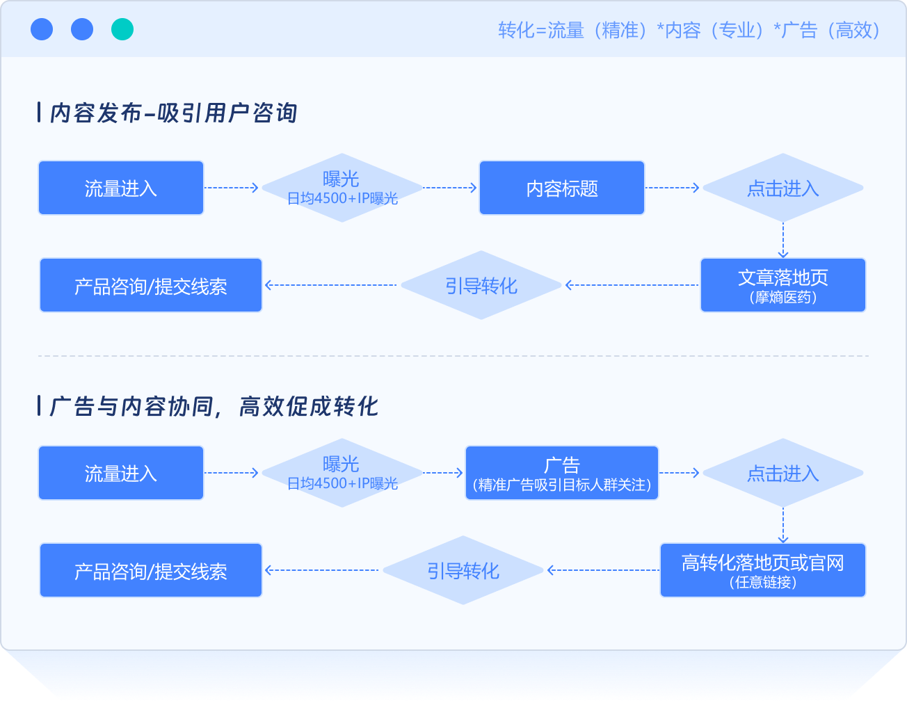 借助摩熵医药平台的优质广告位资源,开展精确高效的广告投放,借助品牌拓展市场,提升产品知名度