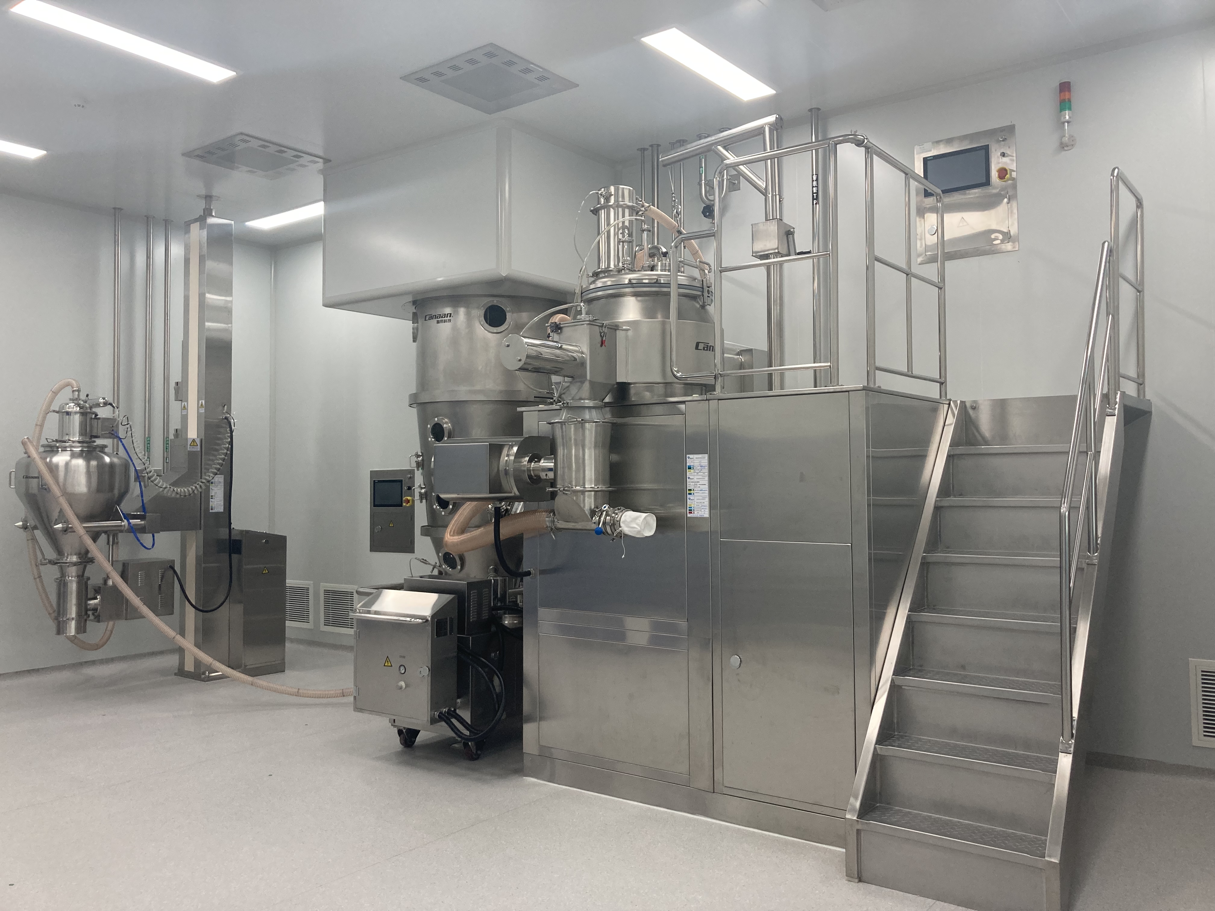 固体制剂车间主要设备包括:粉碎机、三元振荡筛、称量室、湿法制粒线、干法制粒机、柱式料斗混合机、旋转式高速压片机、包衣机、铝铝包装机、瓶包装线、智能高速装盒机等。