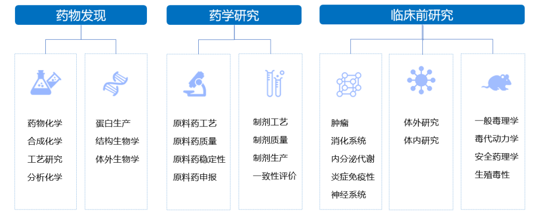 我们关注全球医药行业创新发展的需求,立足于创新药物研发的关键环节,凭借服务国内外生物医药行业所积累的经验,构建涵盖药物发现、药学研究以及临床前研究关键技术的综合性技术平台,为全球生物医药行业提供全方位新药临床前研发服务。