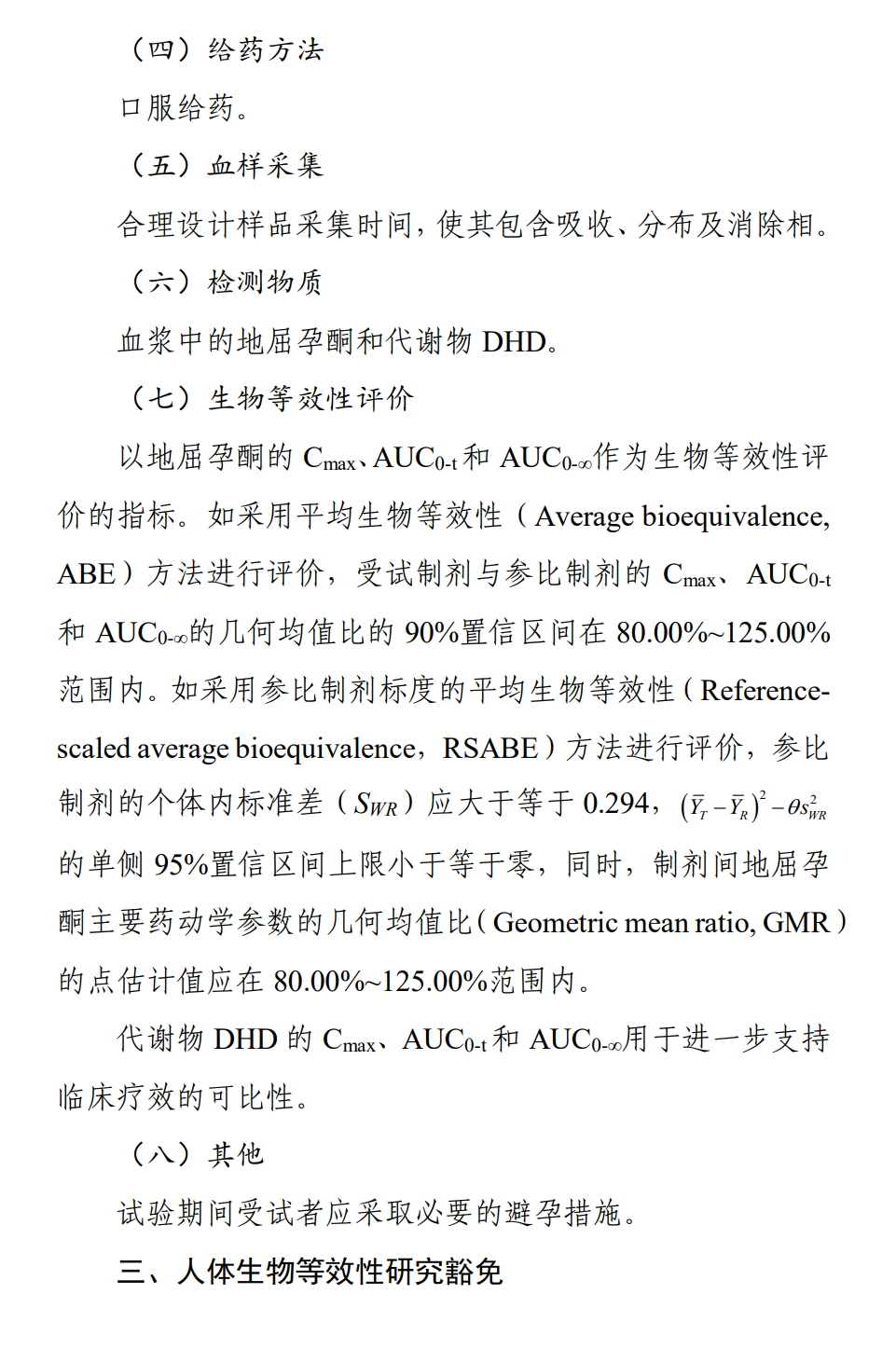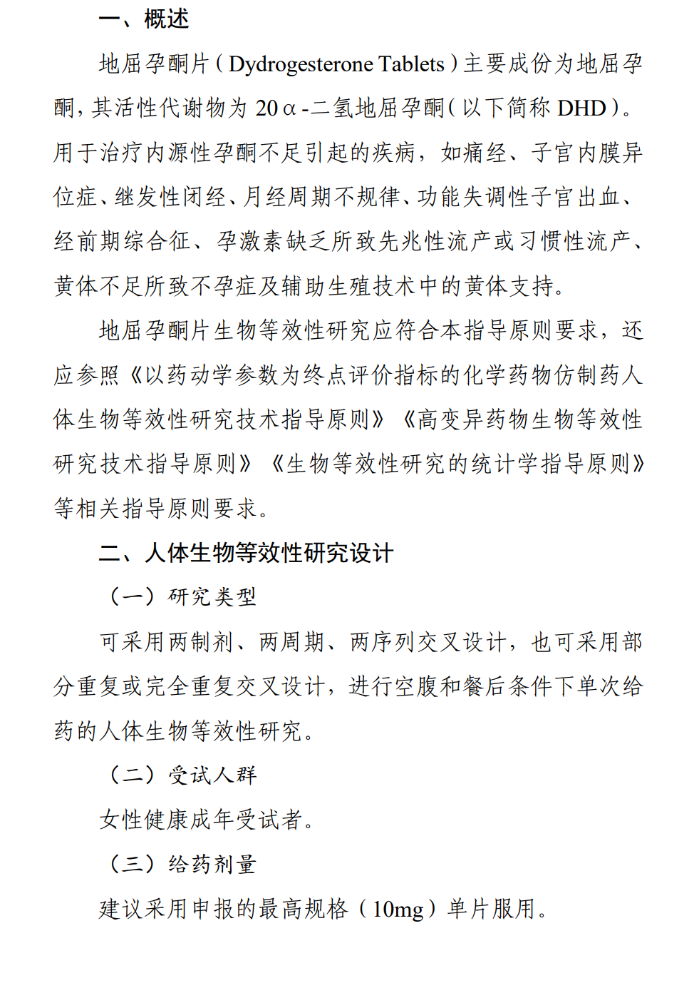地屈孕酮片生物等效性研究技术指导原则