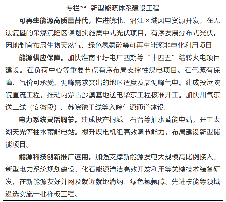 夯实化石能源安全保供基础。抓好煤炭稳产稳供,有序推进煤炭深部资源开发,畅通省外煤炭供应渠道,保持省内煤炭产能基本稳定在1.3亿吨/年左右。统筹电力保供和系统调节需求,有序布局一批支撑性电源项目。建设能源重要输配枢纽,合理布局跨省区灵活互济电网工程,加强与长三角及周边省份电网互联。扩大主要气源供应,有序引入进口液化天然气、省外煤层气等。因地制宜发展生物天然气。持续完善油气管网基础设施,加快国家主干管道和县域天然气管网建设。