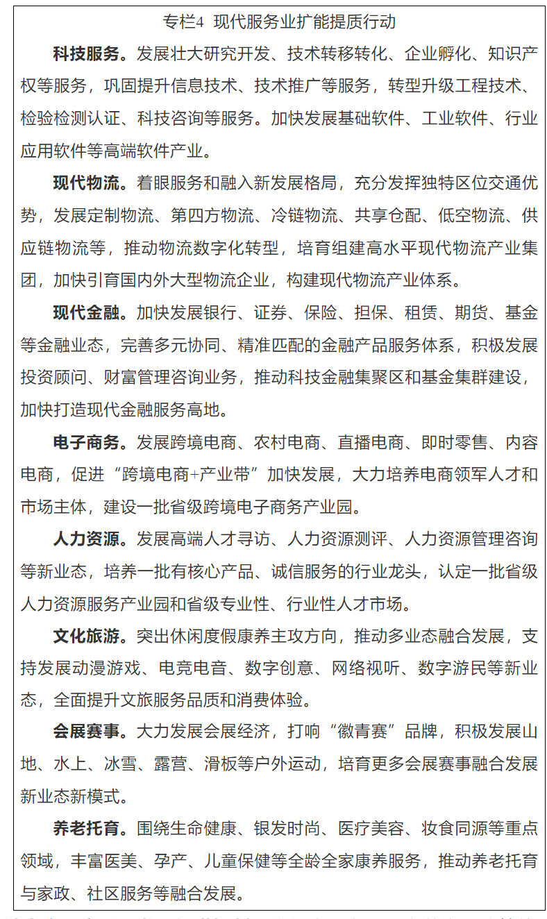 实施创业安徽升级行动。引育高层次人才创业,促进高校毕业生等重点群体创业,支持返乡入乡创业。优化创业服务模式,强化创业融资支持,培育新时代创业文化,打造全链条、全生命周期创业生态。创优“马兰花”创业培训品牌,开展“未来新徽商”特训营、新徽商培训工程等创业培训。