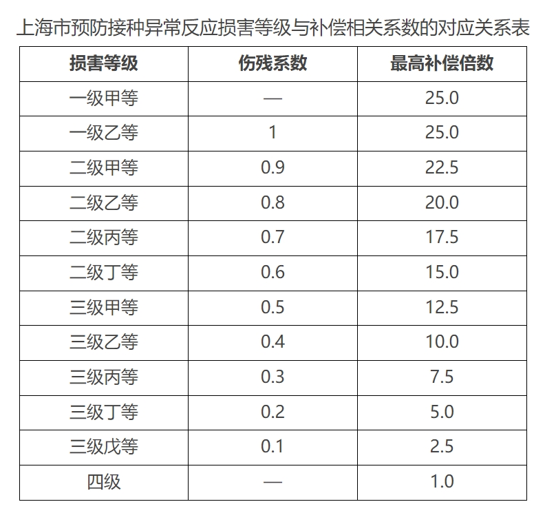 附件:1.上海市预防接种异常反应损害等级与补偿相关系数的对应关系表