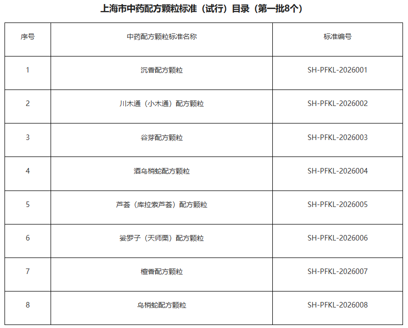 1.上海市中药配方颗粒标准(试行)目录(第一批8个)