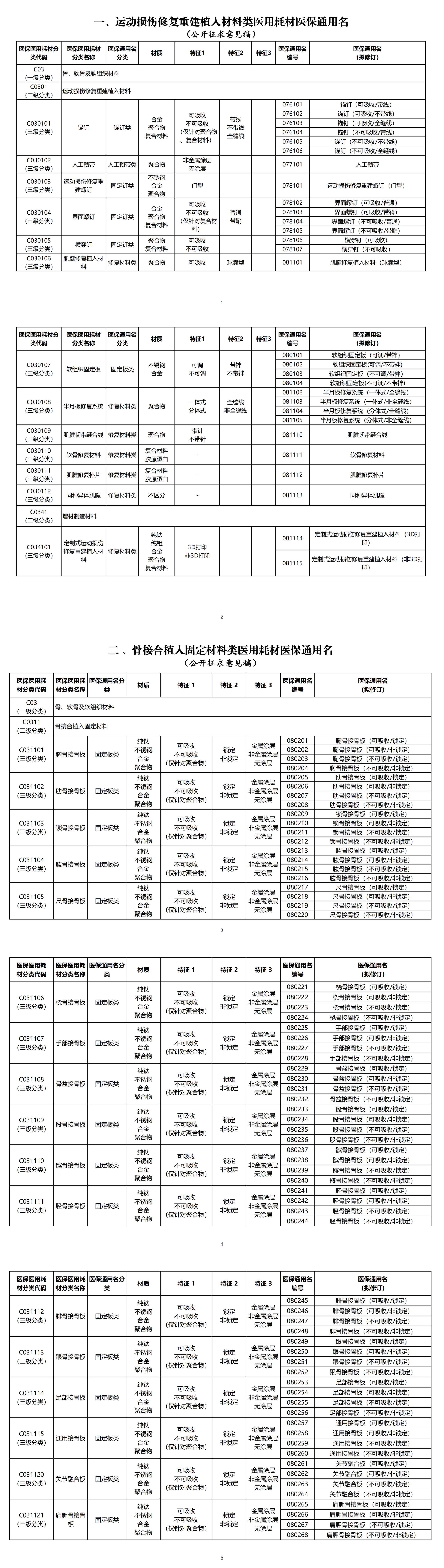附件:“骨、软骨及软组织植入材料”6类医用耗材医保通用名(公开征求意见稿)