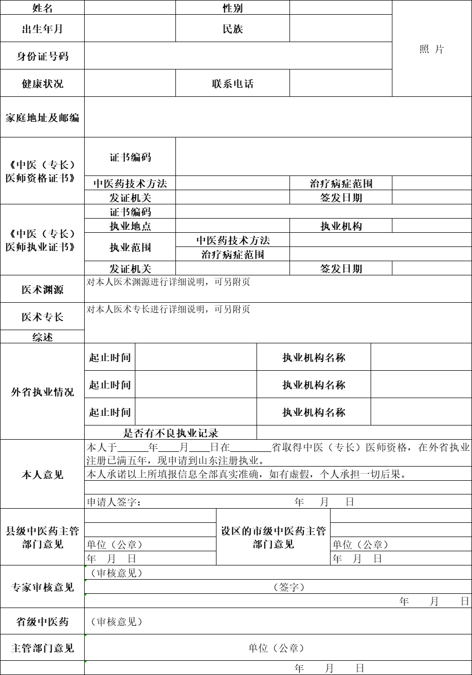 (一)《中医(专长)医师跨省执业申请表》(见附件);