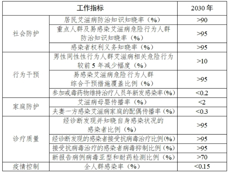 以数字化、智能化为牵引,构建全域覆盖、全链条可控、精准高效的艾滋病防治新格局,巩固完善疾控机构、定点医院、社会组织等多元主体共同参与的工作机制。到2030年,本市艾滋病防治体系更加健全完善,艾滋病新发感染有效降低,相关死亡实质性减少,整体疫情持续控制在低流行水平。具体工作指标如下: