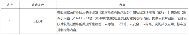 根据国家医保局等八部门《关于开展国家组织高值医用耗材集中带量采购和使用的指导意见》(医保发〔2021〕31号)、《国家卫生健康委 国家发展改革委 财政部 国家医保局 国家中医药局 国家疾控局 中央军委后勤保障部卫生局关于进一步推进医疗机构检查检验结果互认的指导意见》(国卫医政发〔2024〕37号)、《国家医疗保障局关于印发放射检查类医疗服务价格项目立项指南(试行)的通知》(医保价采函〔2024〕233号)等文件要求,打造“医保影像云存储基地”,推进广西壮族自治区数字影像处理和上传存储服务应用,支撑全区医疗机构检查检验结果调阅共享等工作,经研究,决定开展广西壮族自治区云胶片集中带量采购。现将有关事项公告如下: