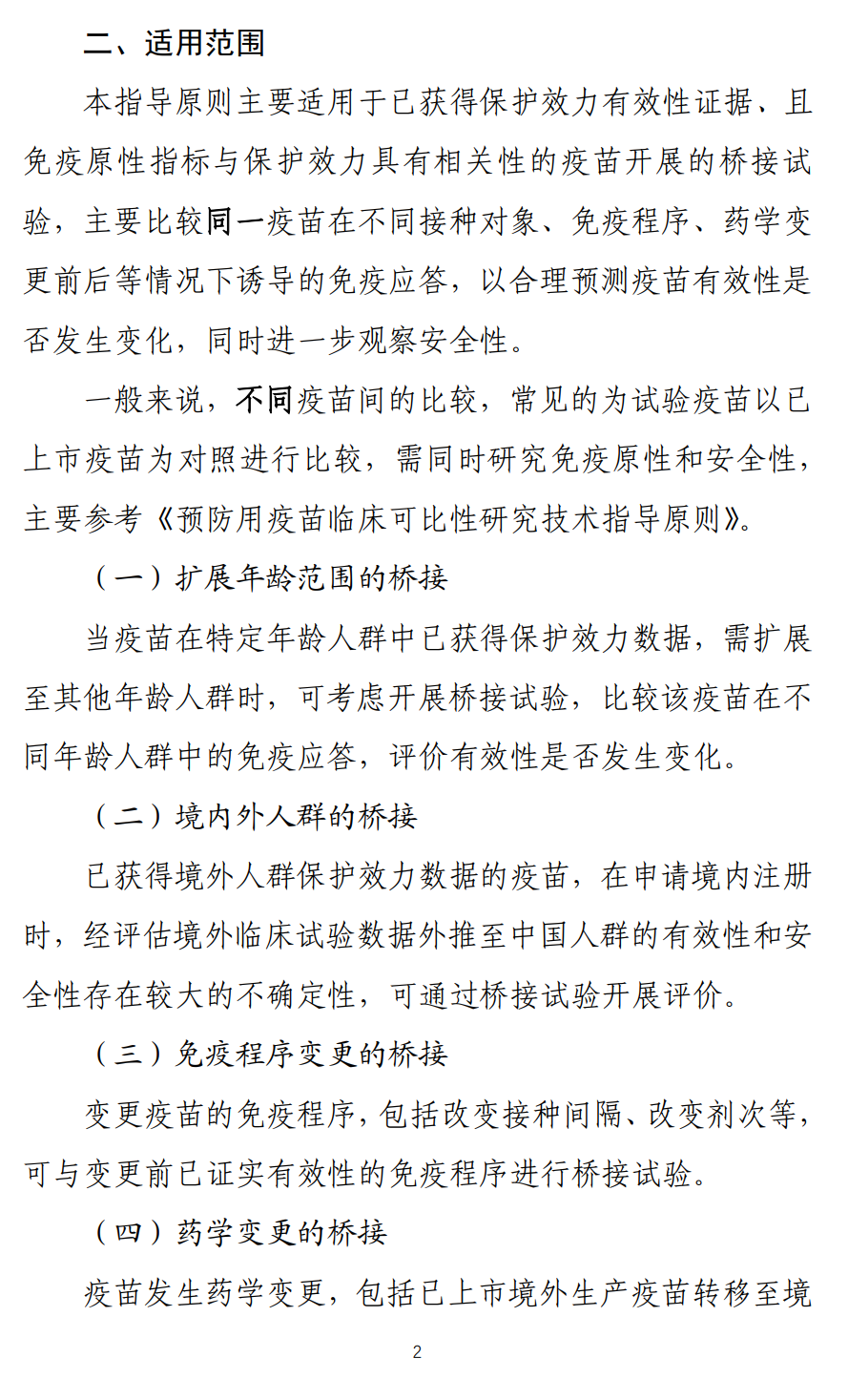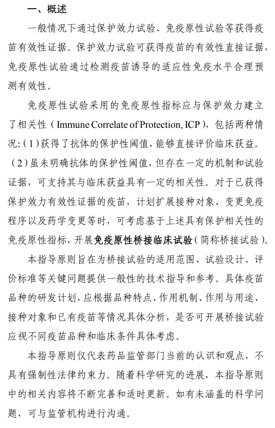 疫苗免疫原性桥接临床试验技术指导原则(试行)