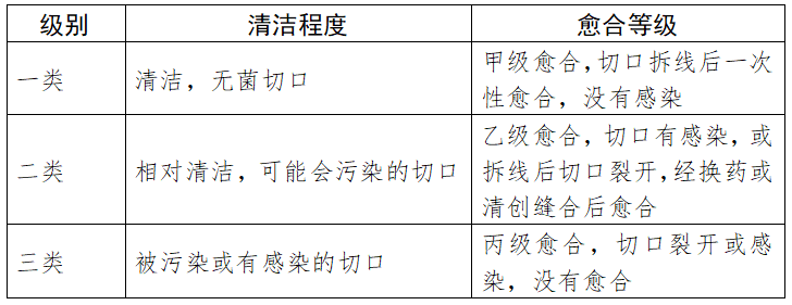 表1 切口清洁程度和愈合等级