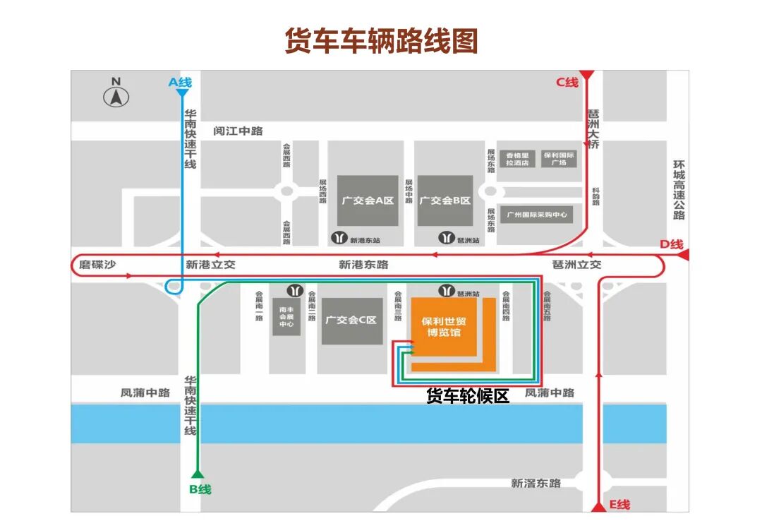 线路 1:华南快速干线(往番禺方向)—新洲收费站出口—新港东路—保利世贸博览馆。