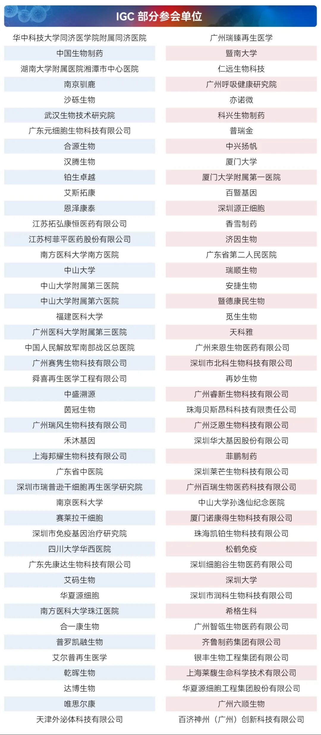 - 合作方: 广州市生物产业联盟、深圳市细胞治疗技术协会等