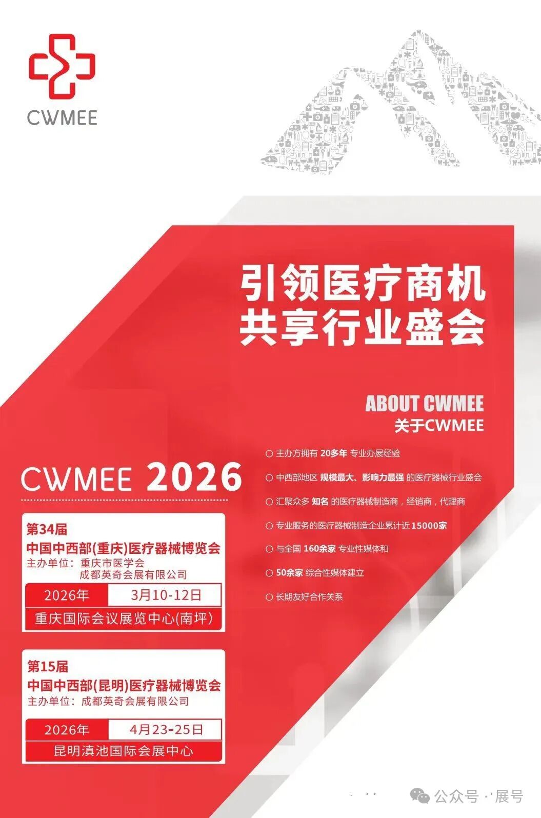 - 展会名称:第三十四届中国中西部(重庆)医疗器械博览会(2026西南医疗展·重庆医疗展)