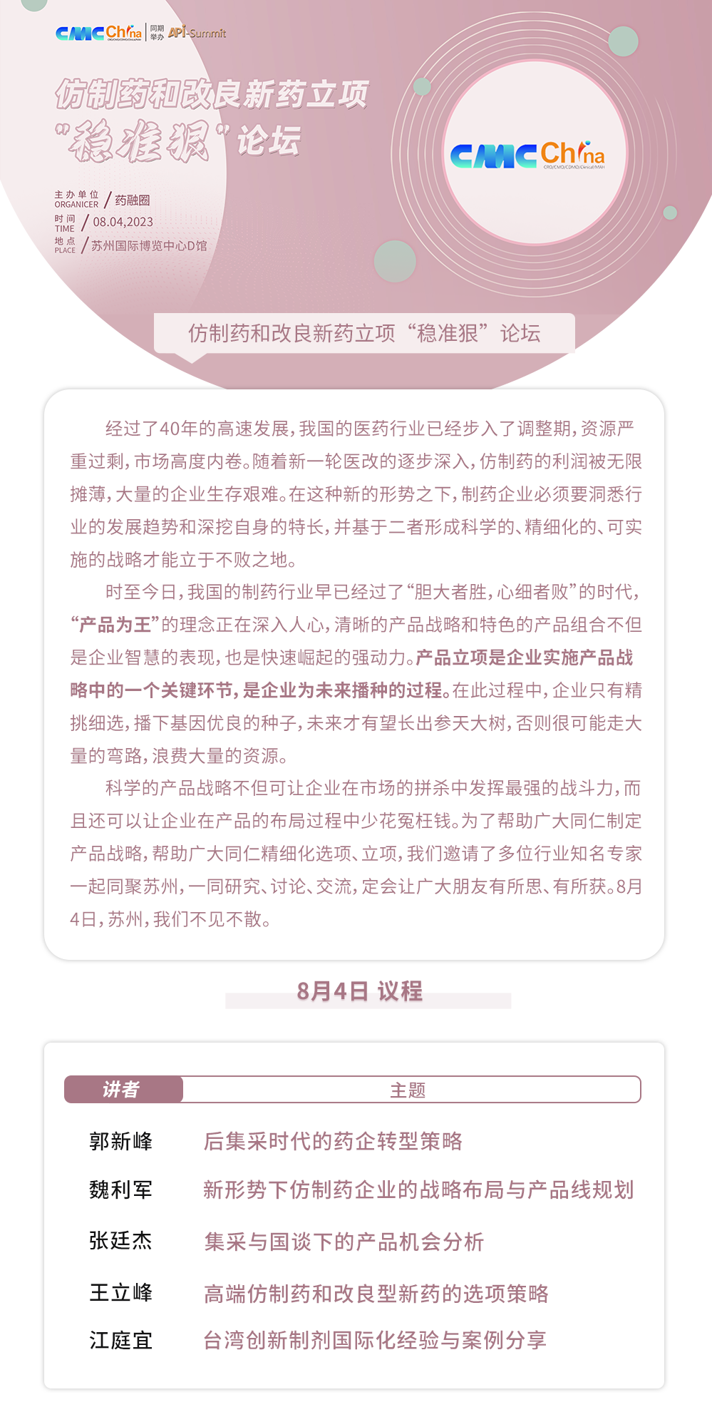 仿制药和改良新药立项“稳准狠”论坛