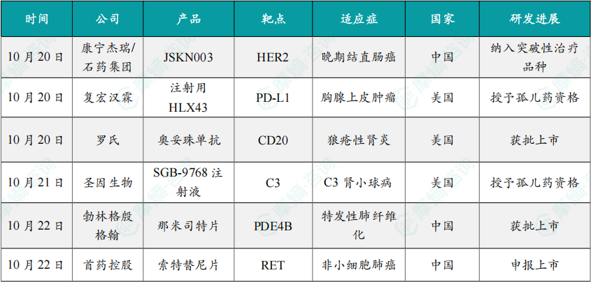(1)康宁杰瑞/石药集团HER2双抗ADC新药JSKN003被纳入突破性治疗品种