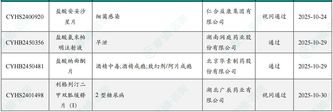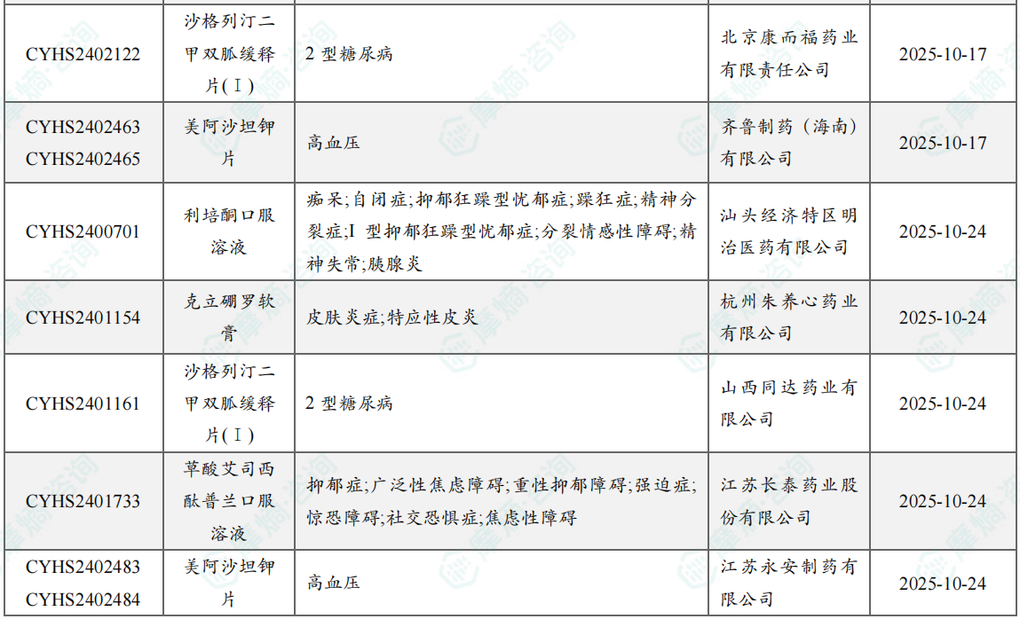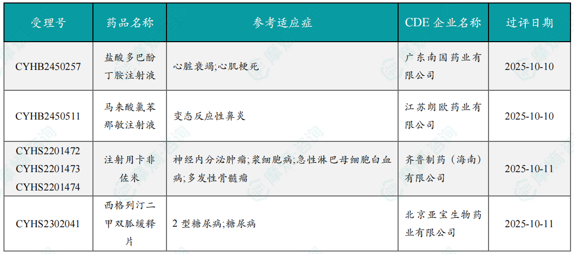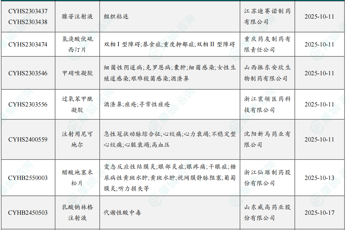 10月过评/新注册分类仿制药获批上市信息