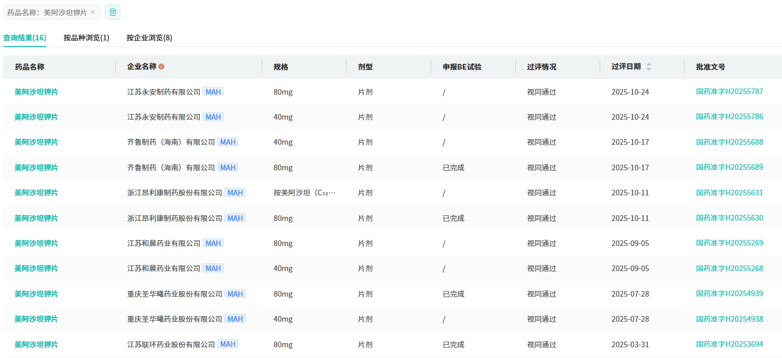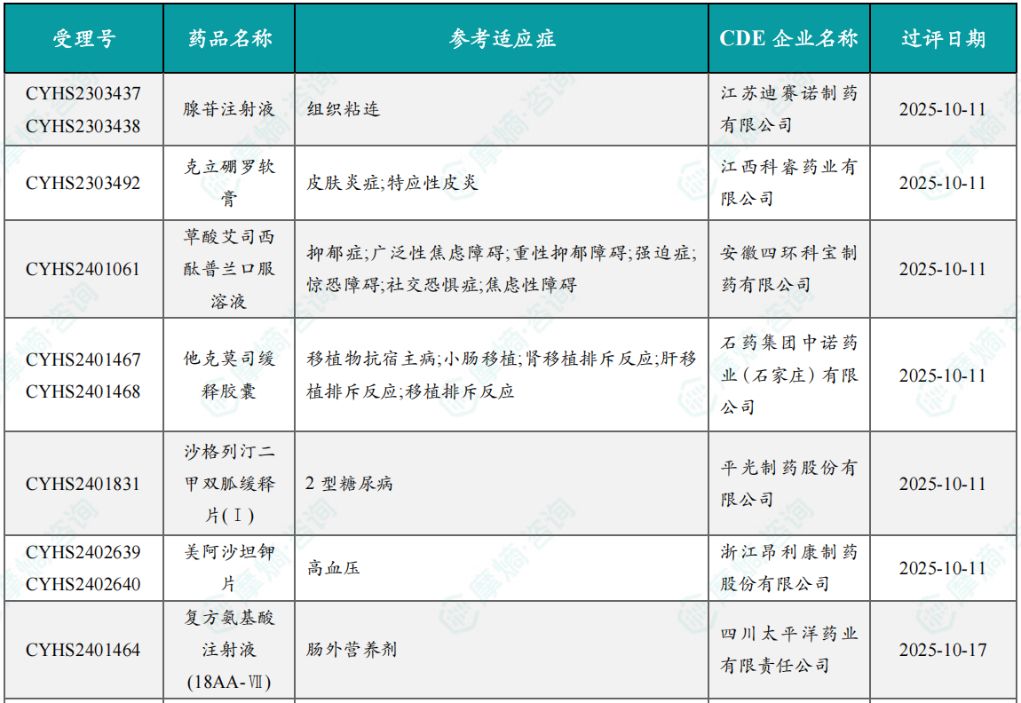 根据摩熵医药数据库统计,2025年10月期间共有8个(共计19个受理号)品种一致性评价达七家过评。