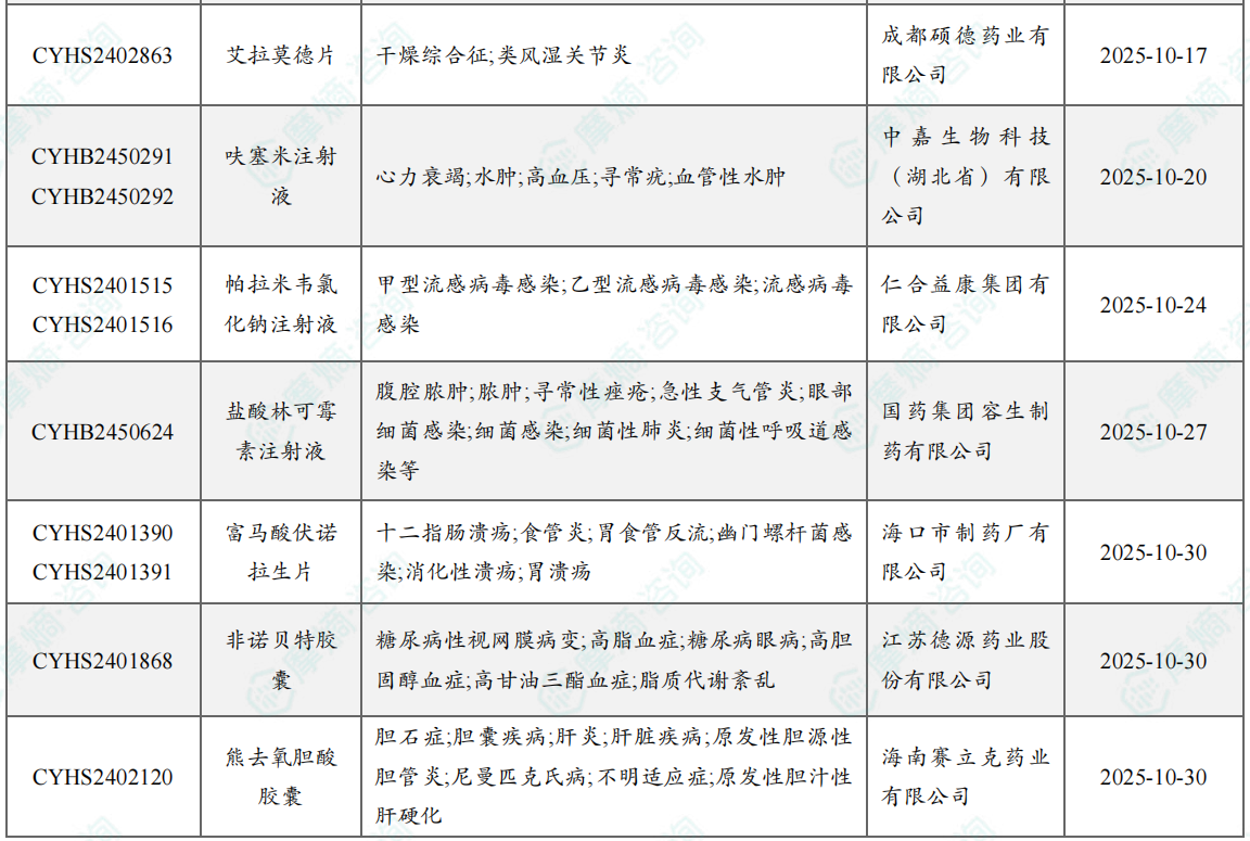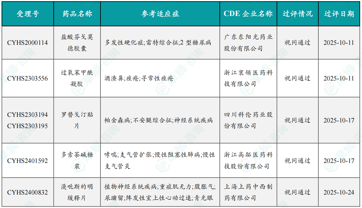 2025年10月一致性评价过评品种信息一览表(部分)