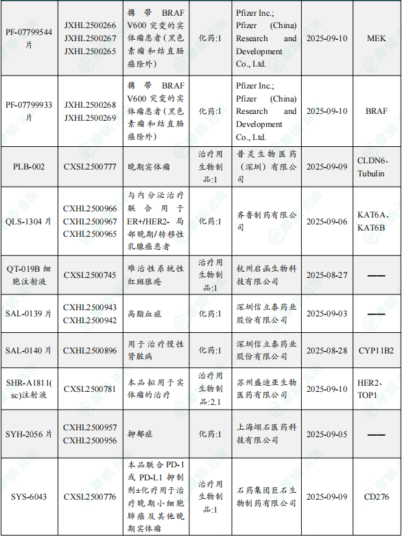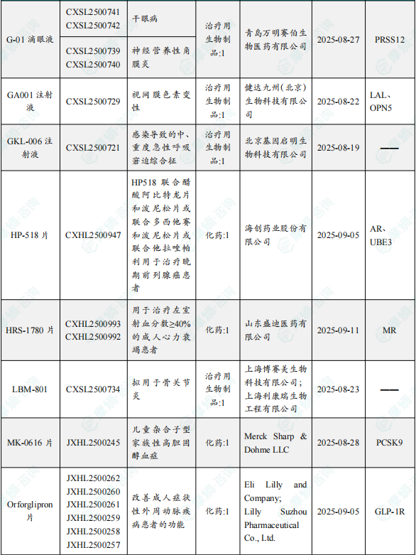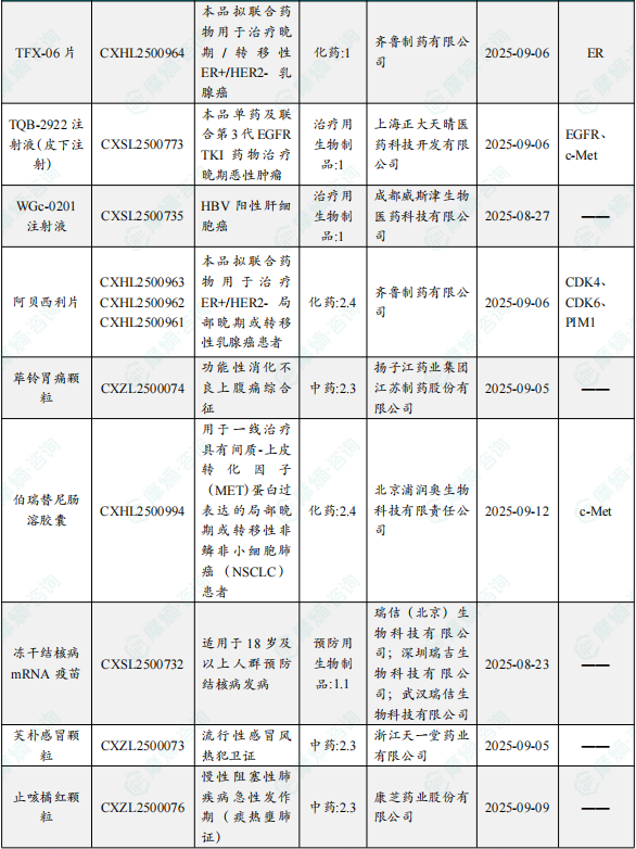 备注:(1)此处未包括补充申请之情形;(2)此处所列创新药/改良型新药,主要是指CDE受理批准的1类、2类、5.1类以及生物制品3.1类和3.2类。(3)更多获批临床信息及研发进展详情及相关靶点全局分析等,可通过摩熵中国药品审评数据库获取并下载EXCEL表格。