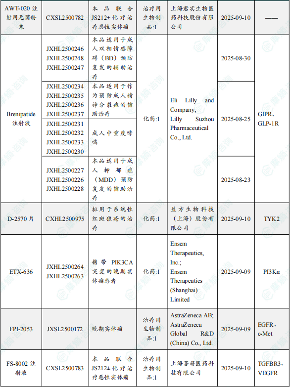 11月21日,CDE官网公示:礼来的Brenipatide注射液获得临床试验默示许可,获批适应症包括:(1)用于成人双相情感障碍(BD)预防复发的辅助治疗(2)用于作为预防成人精神分裂症的辅助治疗(3)用于成人中重度哮喘(4)用于成人抑郁症(MDD)预防复发的辅助治疗。