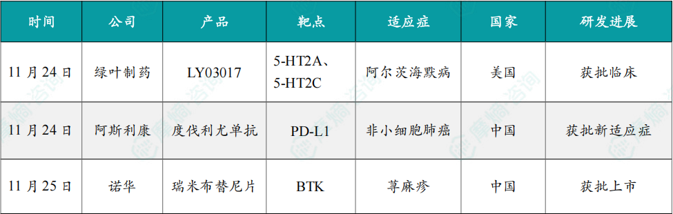 11月24日,绿叶制药宣布,其自主研发的新一代5-羟色胺2A型受体(5-HT2AR)反向激动剂和5-羟色胺2C型受体(5-HT2CR)拮抗剂 LY03017 已获得美国FDA许可开展临床试验。