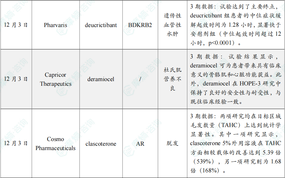 (4)Pharvaris公布在研疗法deucrictibant 3期试验积极结果