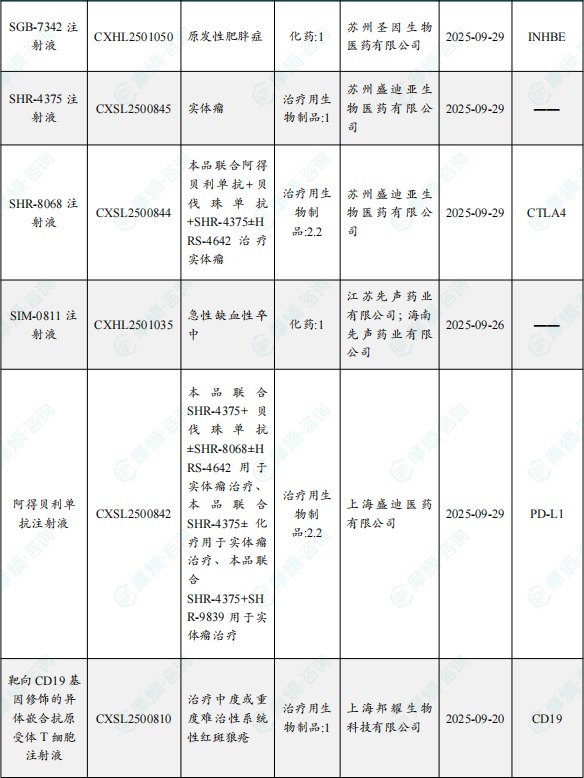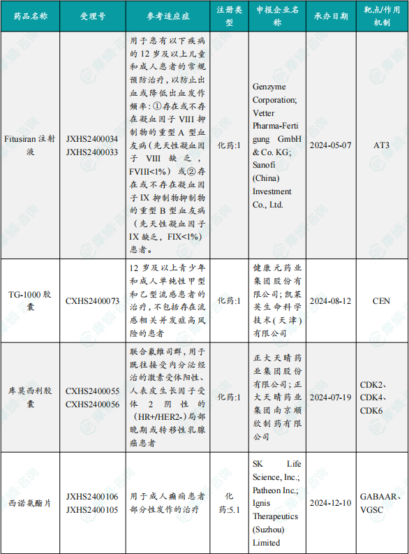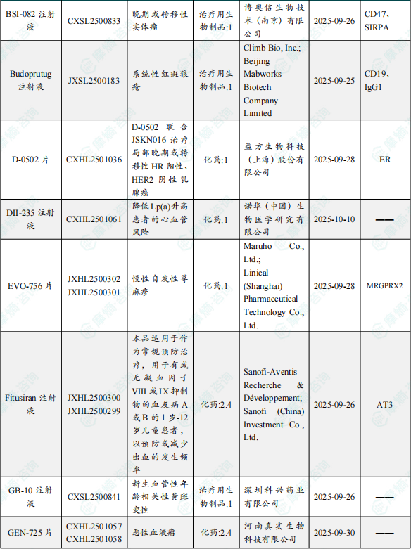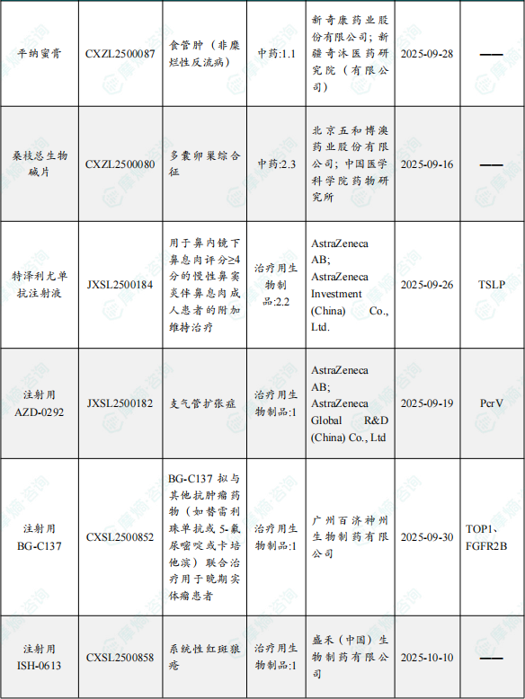 备注:(1)此处未包括补充申请之情形;(2)此处所列创新药/改良型新药,主要是指CDE受理批准的1类、2类、5.1类以及生物制品3.1类和3.2类。(3)更多获批临床信息及研发进展详情及相关靶点全局分析等,可通过摩熵中国药品审评数据库获取并下载EXCEL表格。