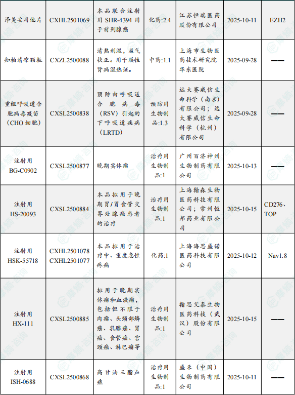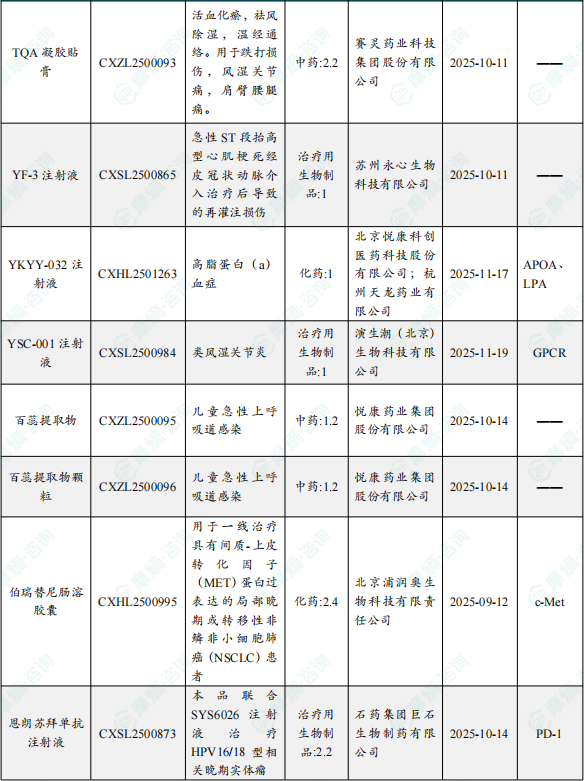 备注:(1)此处未包括补充申请之情形;(2)此处所列创新药/改良型新药,主要是指CDE受理批准的1类、2类、5.1类以及生物制品3.1类和3.2类。(3)更多获批临床信息及研发进展详情及相关靶点全局分析等,可通过摩熵中国药品审评数据库获取并下载EXCEL表格。