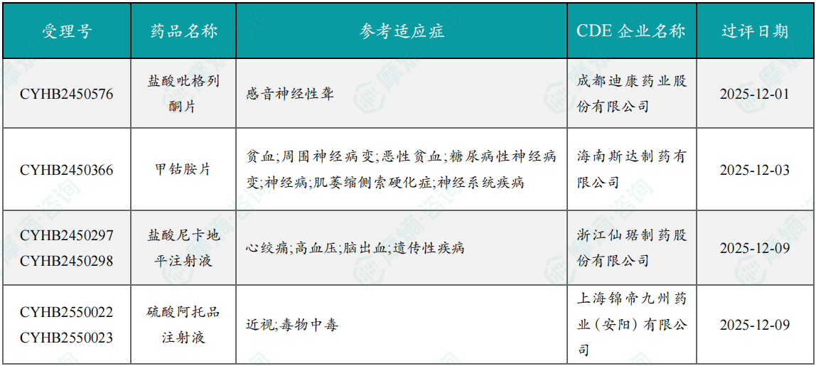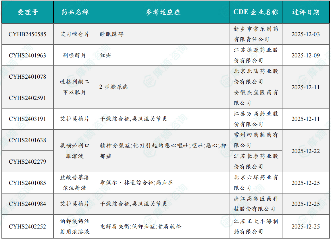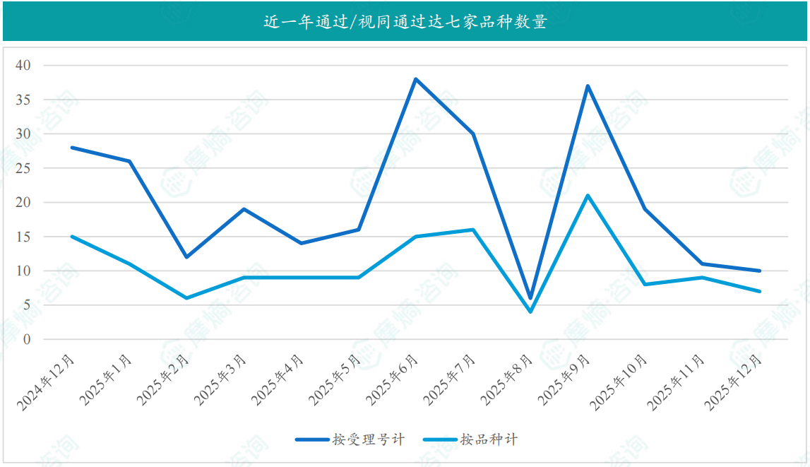 根据摩熵医药数据库统计,2025年12月期间共有7个(共计10个受理号)品种一致性评价达七家过评。