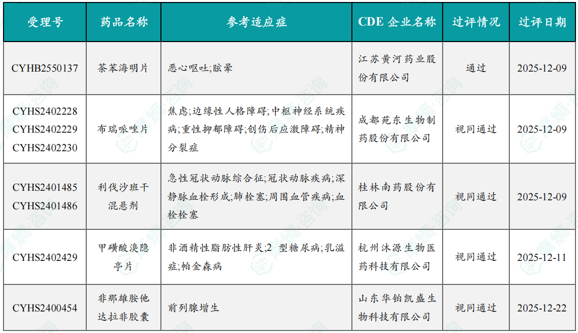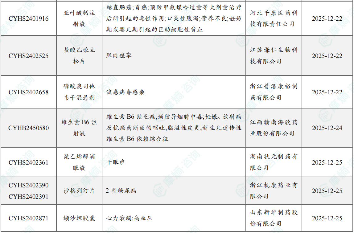 2025年12月首家通过/视同通过一致性评价品种信息一览表
