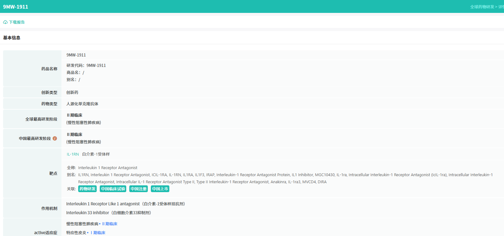 查数据,找摩熵!想要解锁更多药物研发信息吗?查询摩熵医药(原药融云)数据库(vip.pharnexcloud.com/?zmt-mhwz)掌握药物基本信息、市场竞争格局、销售情况与各维度分析、药企研发进展、临床试验情况、申报审批情况、各国上市情况、最新市场动态、市场规模与前景等,以及帮助企业抉择可否投入时提供数据参考!注册立享15天免费试用!