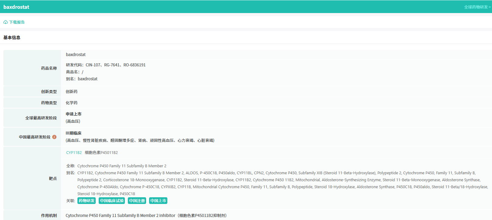 12月2日,阿斯利康宣布Baxdrostat的上市申请已获得FDA受理并予以优先审评,用于治疗难以控制的高血压。如果获得批准,该药物有望成为首个获批上市的醛固酮合成酶(ALDOS)抑制剂。Baxdrostat是CinCor Pharma开发的一种靶向ALDOS(由CYP11B2基因编码)的潜在first in class、高选择性、强效口服小分子抑制剂,旨在通过抑制肾上腺中醛固酮合成的最后3个限速步骤来降低醛固酮水平。