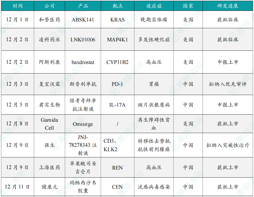 12月全球在研新药月报内容亮点