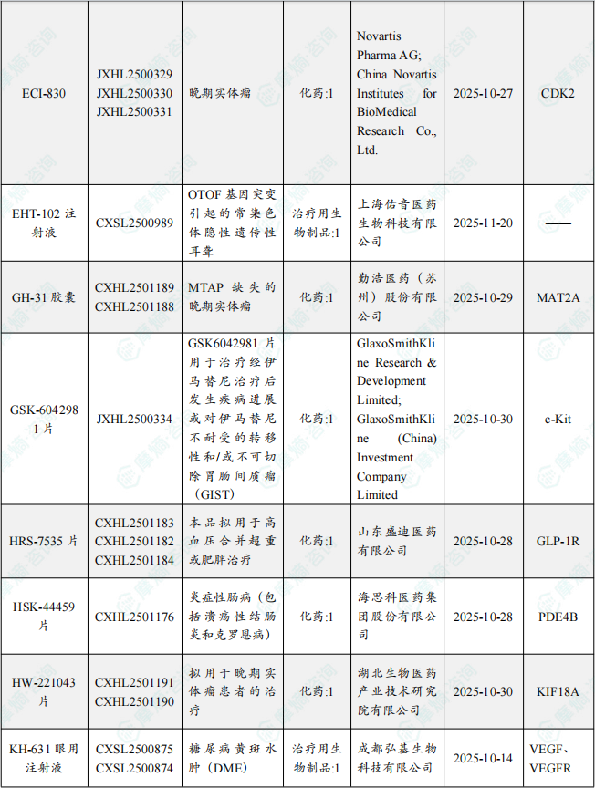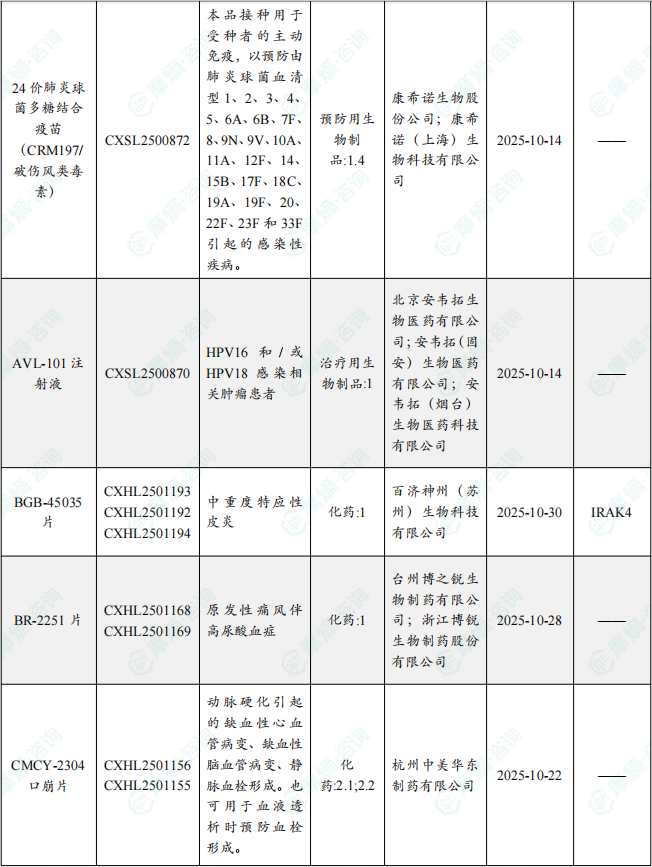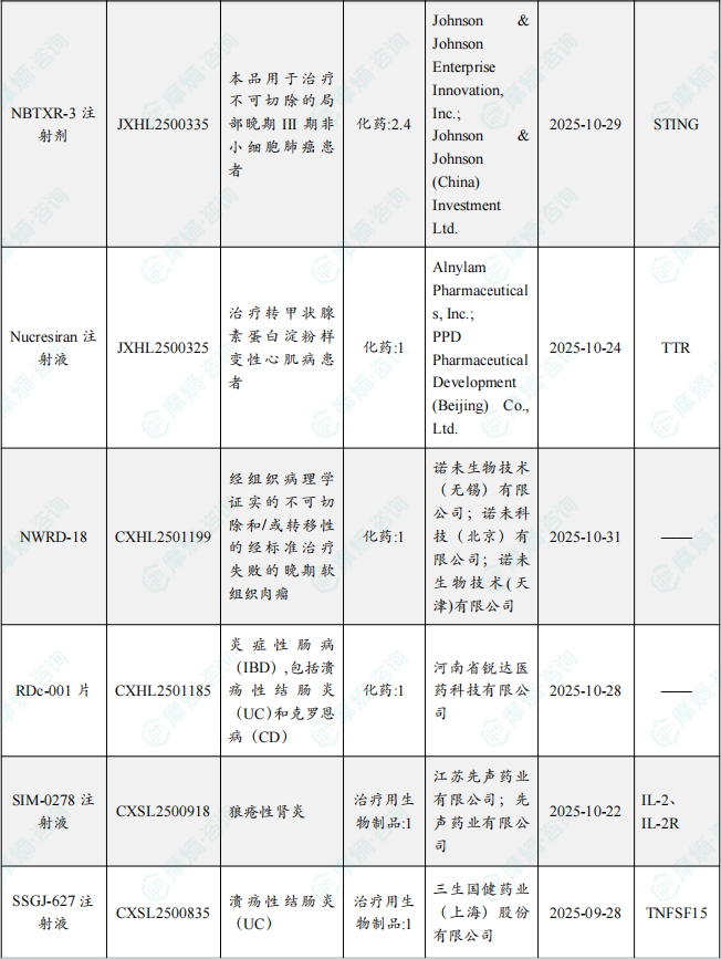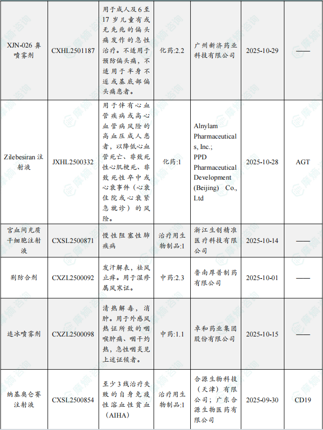 备注:(1)此处未包括补充申请之情形;(2)此处所列创新药/改良型新药,主要是指CDE受理批准的1类、2类、5.1类以及生物制品3.1类和3.2类。(3)更多获批临床信息及研发进展详情及相关靶点全局分析等,可通过摩熵中国药品审评数据库获取并下载EXCEL表格。
