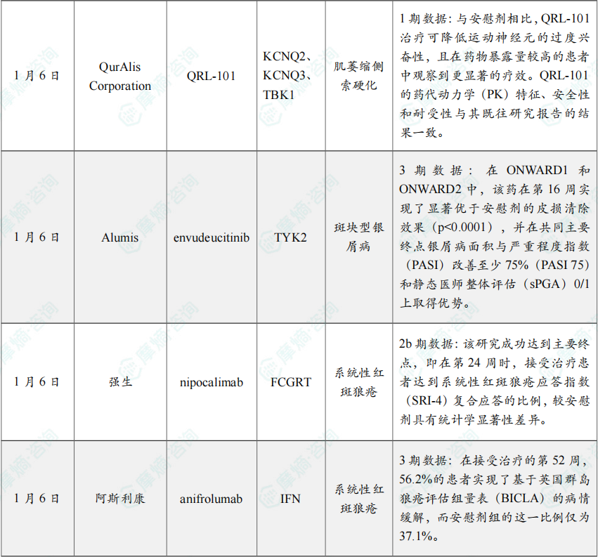 (2)QurAlis Corporation公司公布其在研疗法QRL-101 1期临床数据