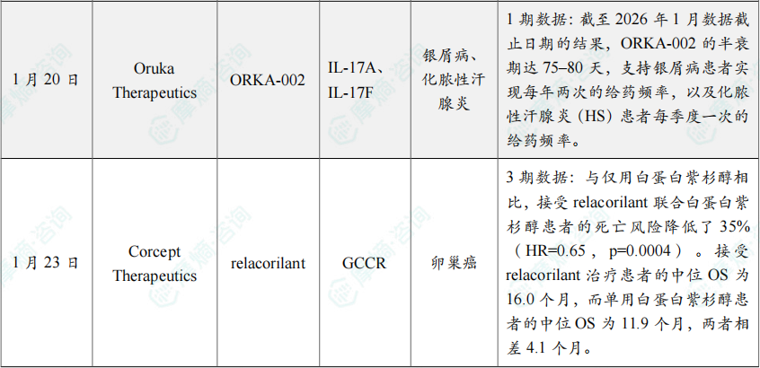 此前,美国FDA已受理 relacorilant 用于治疗铂耐药卵巢癌的上市申请,并设定PDUFA日期为2026年7月11日。此外,欧洲药品管理局(EMA)也正在审评该疗法用于治疗铂耐药卵巢癌的上市许可申请(MAA)。