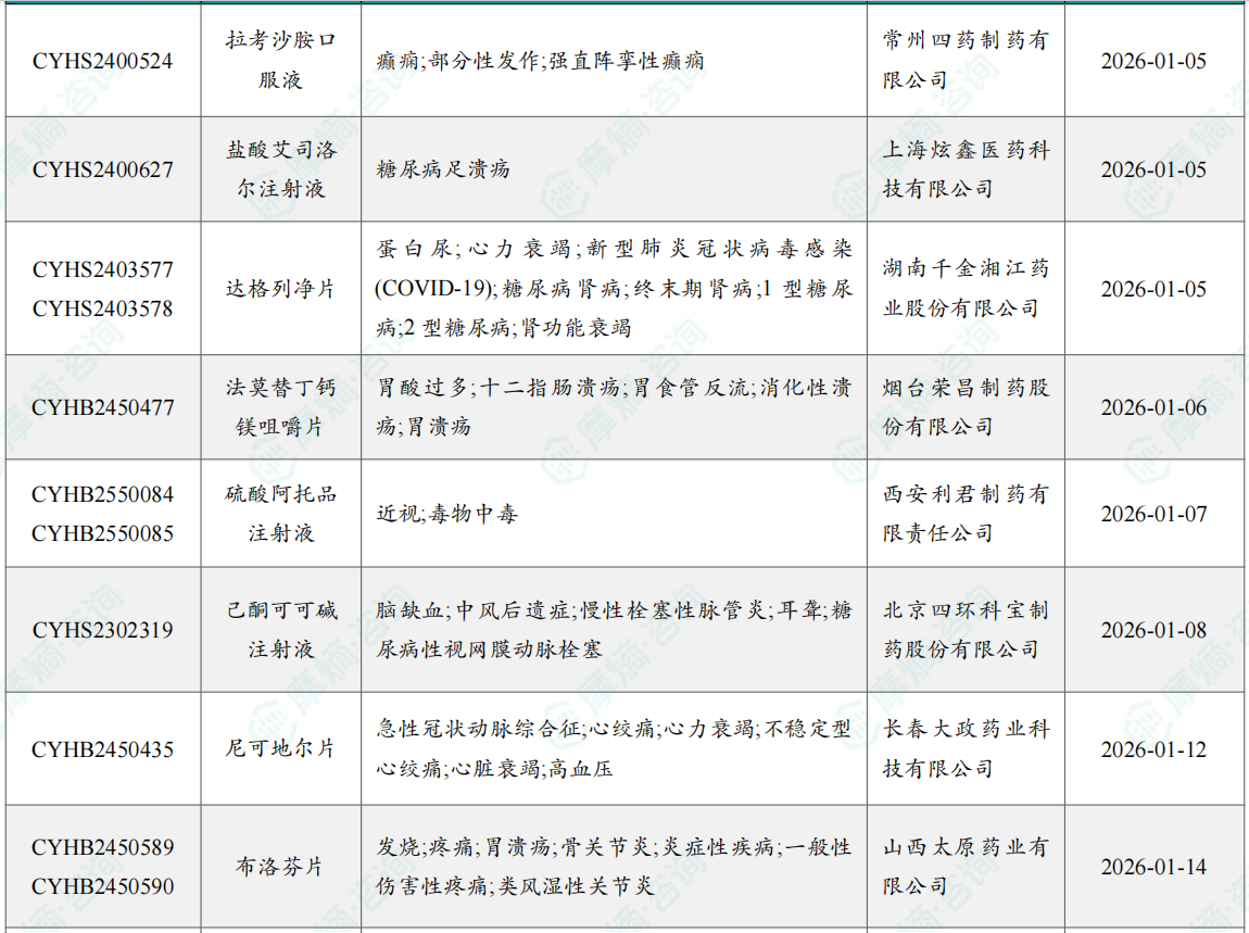 2026年1月首家通过/视同通过一致性评价品种信息一览表