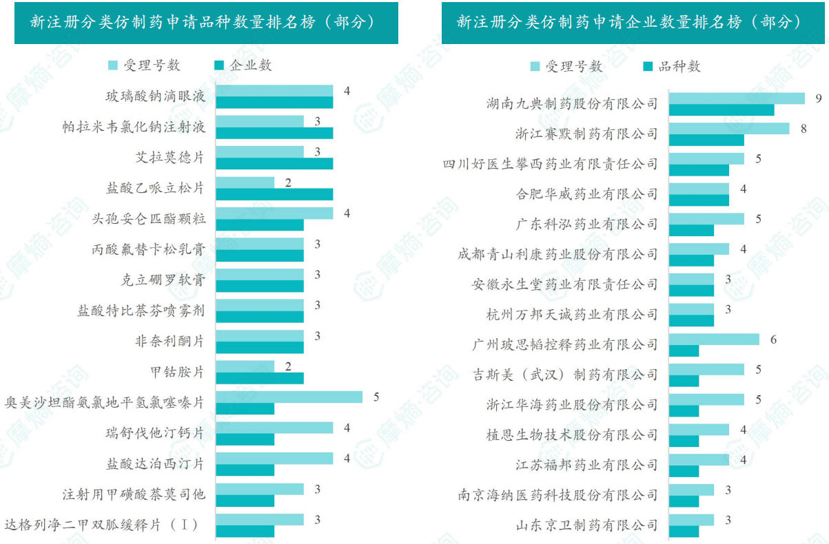 注射用头孢噻肟钠为受理号最多的品种,有4个;上海上药新亚药业有限公司为申请品种数最多的企业,有3个品种。