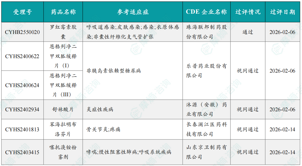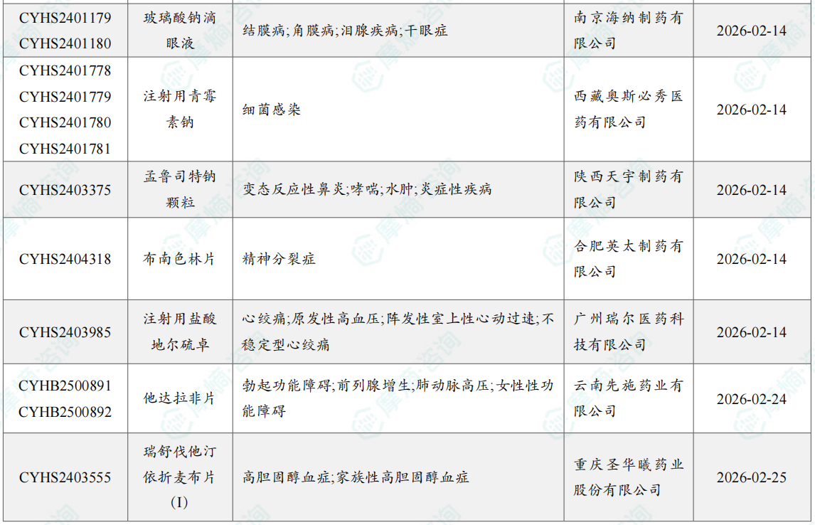 2026年2月首家通过/视同通过一致性评价品种信息一览表